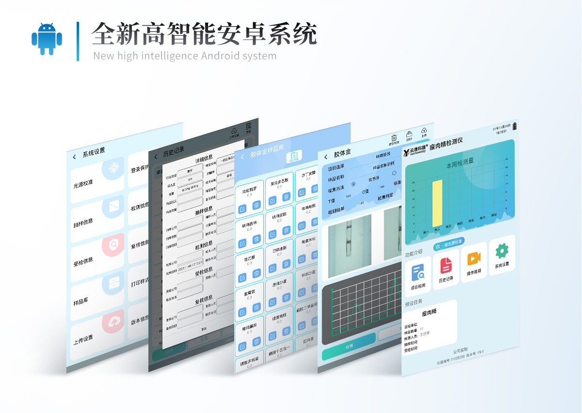 1、儀器采用10.1英寸液晶觸摸屏顯,搭配運(yùn)行安卓智能操作系統(tǒng),主控芯片采用ARM Cortex-A7,RK3288/4核處理器,主頻1.88Ghz,運(yùn)轉(zhuǎn)速度更快速,性能更強(qiáng)。